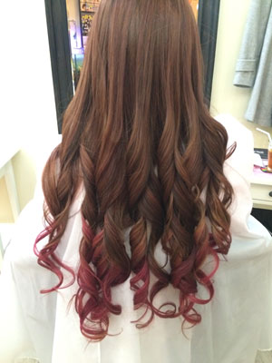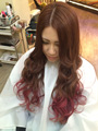 かわいらしいピンクからワインレッドのグラデーション☆毛先の傷みもピンク色でカバー!!